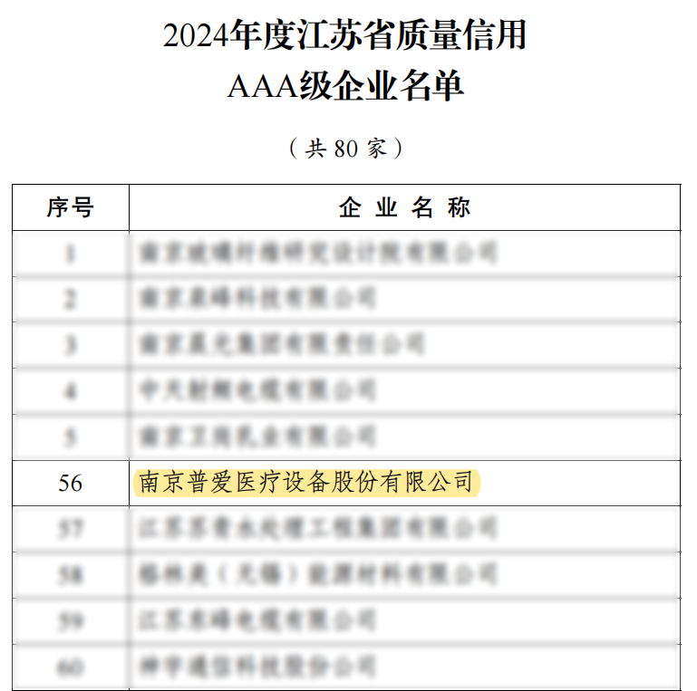 11月25日,江蘇省市場監(jiān)管局發(fā)布了《2024年度江蘇省質(zhì)量信用AAA級企業(yè)公示名單》,普愛醫(yī)療以優(yōu)秀的產(chǎn)品質(zhì)量、穩(wěn)定的運營能力及良好的社會責(zé)任實踐成功入選。