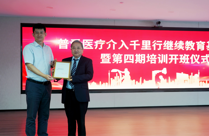 第四期介入培訓(xùn)班,新加入了中國(guó)藥科大學(xué),現(xiàn)由我司與中國(guó)藥科大學(xué)和南京市第一醫(yī)院三方聯(lián)合辦學(xué),本期介入培訓(xùn)班邀請(qǐng)到了南京市第一醫(yī)院顧建平教授、中國(guó)藥科大學(xué)繼續(xù)教育學(xué)院張永澤院長(zhǎng)等領(lǐng)導(dǎo)出席本次開(kāi)班儀式。中國(guó)藥科大學(xué)院方領(lǐng)導(dǎo)為我司董事長(zhǎng)劉金虎先生頒發(fā)了“中國(guó)藥科大學(xué)繼續(xù)教育學(xué)院戰(zhàn)略發(fā)展專家”聘書(shū),并為我司舉行了“中國(guó)藥科大學(xué)繼續(xù)教育現(xiàn)場(chǎng)教學(xué)基地”揭牌儀式。